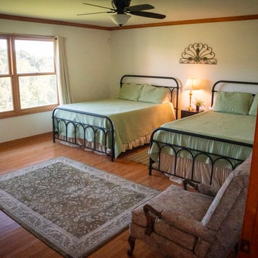 Master bedroom with two queen beds and ensuite bathroom